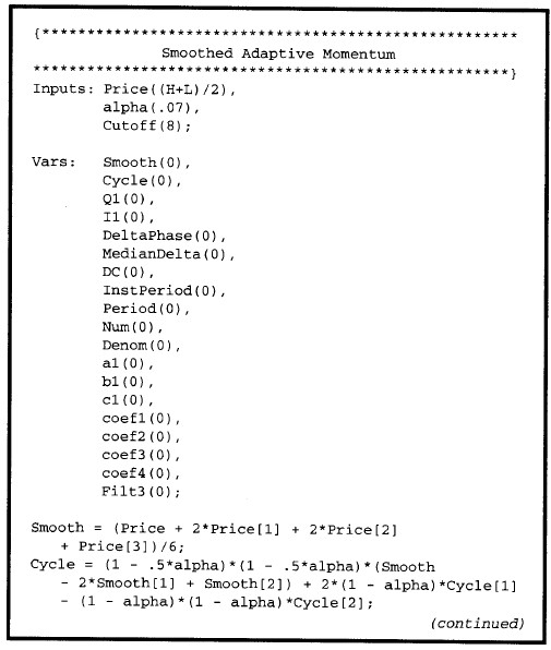 今天翻書翻到一個策略的程式碼(Smoothed Adaptive Momentum, SAM),據說在某一些期貨應用上聽說很好用,在這裡提供給大家參考(辛苦掃描的結果)。